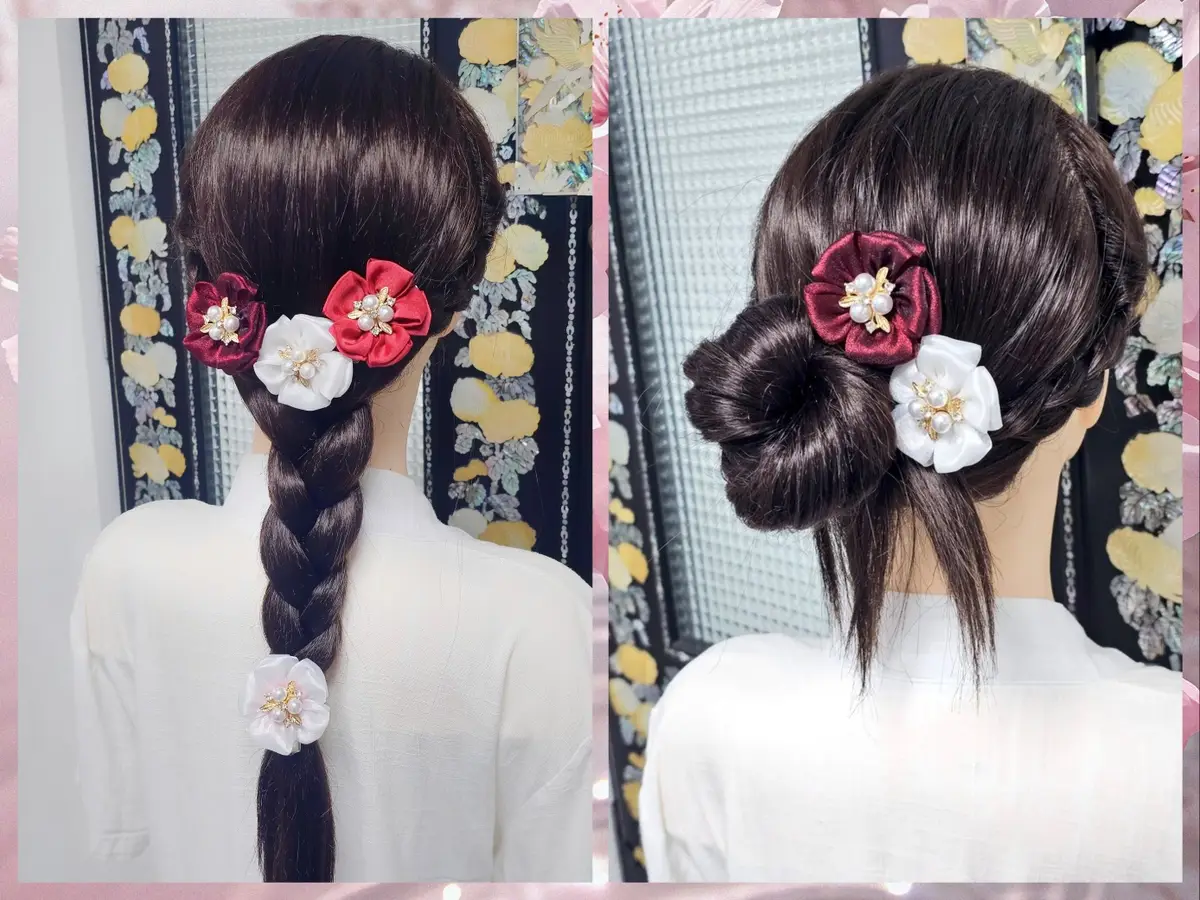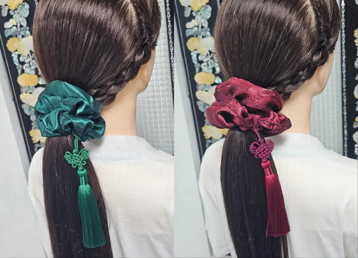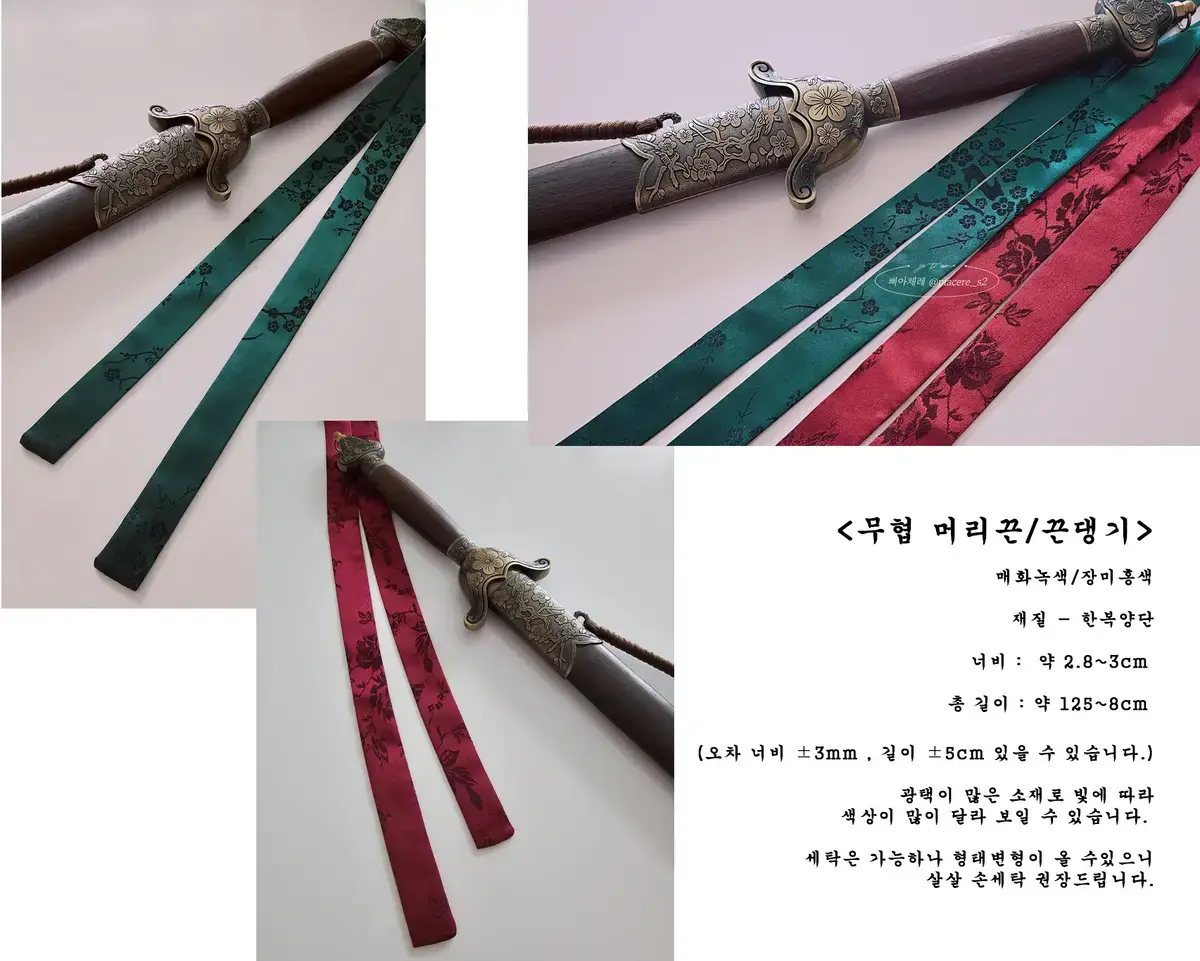 한복양단 원단으로 되어있고 사이즈 스펙은 녹색머리끈과 같습니다.