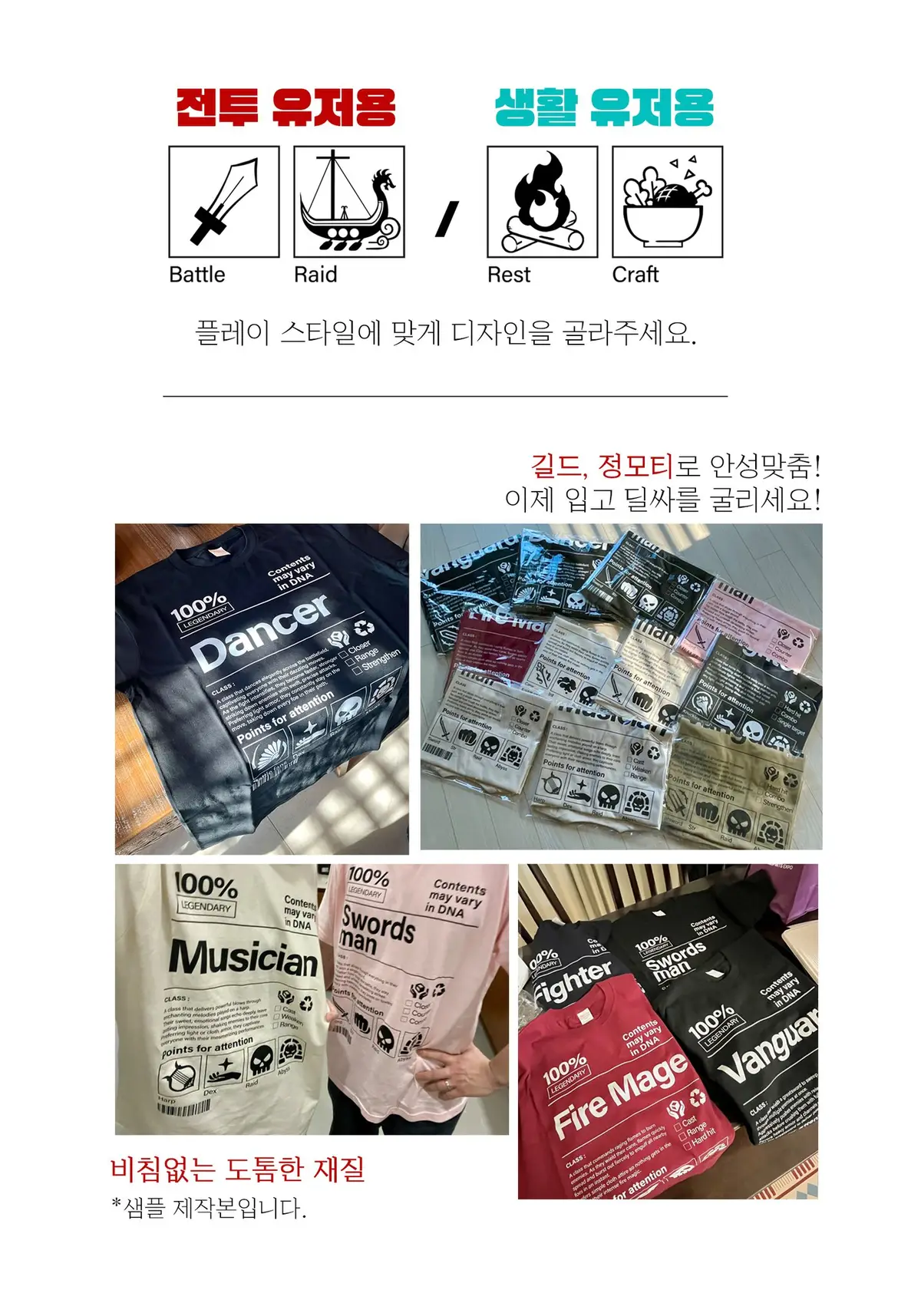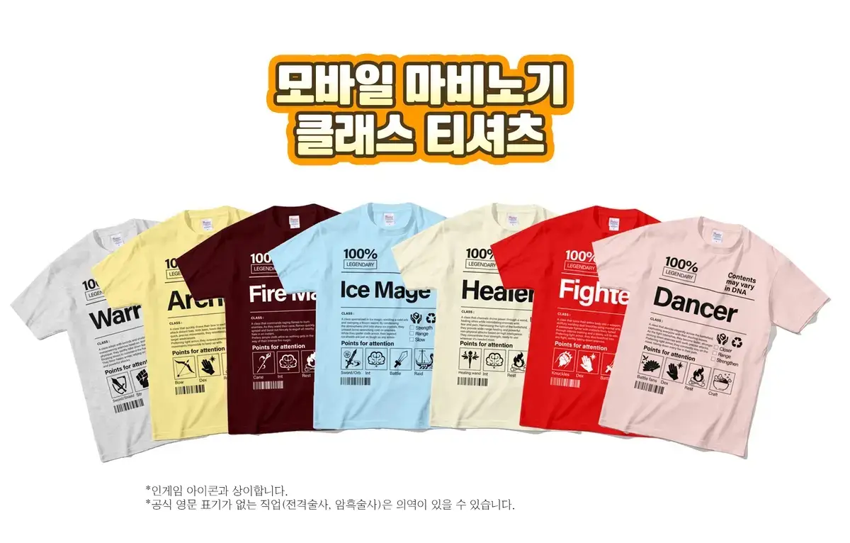 모바일 마비노기 클래스 비공식 티셔츠입니다.