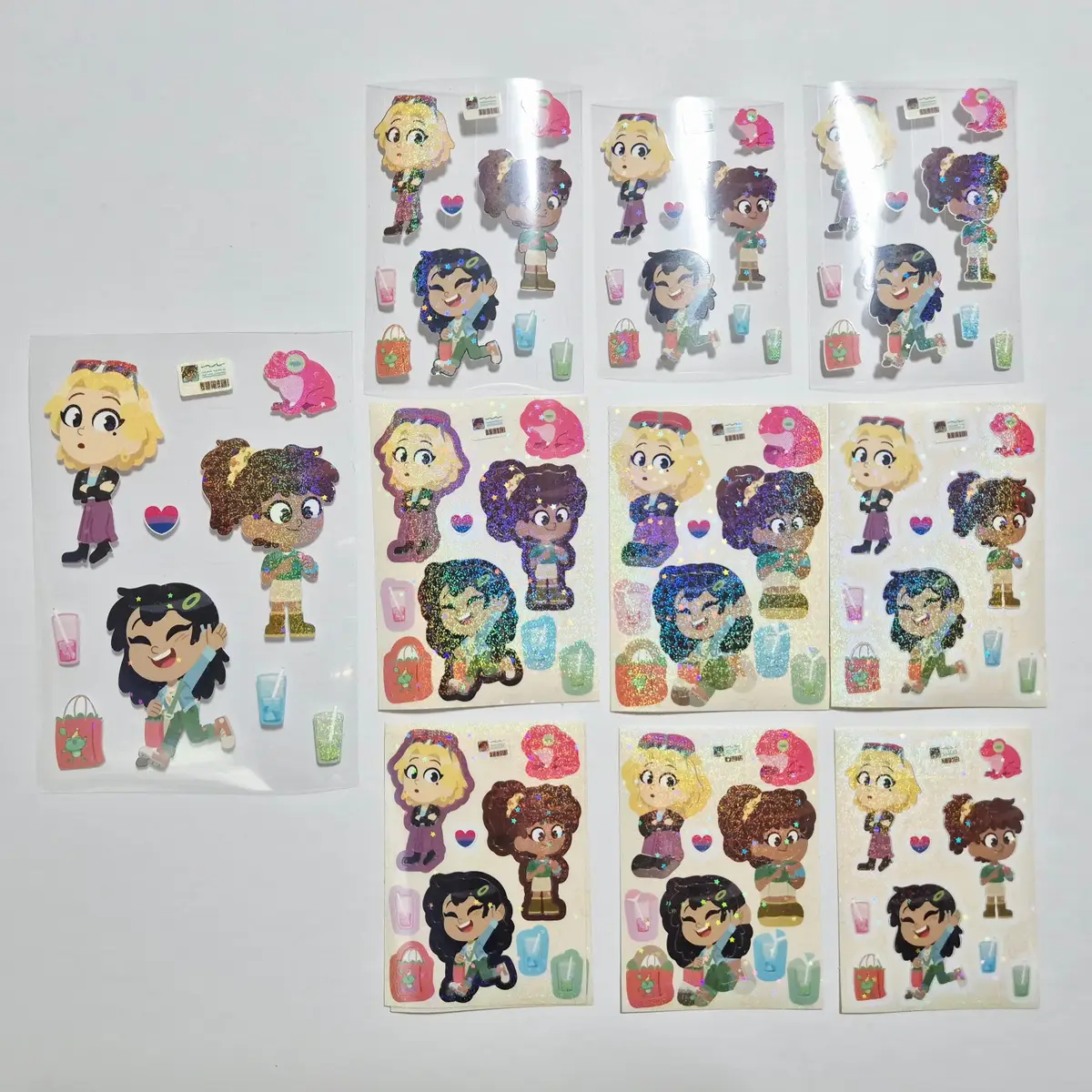 미래 트리오 스티커를 정식으로 만들기 전에 테스트를 위해 제작한 사이즈와 스타일로, 3가지 버전의 칼선 사이즈, 그리고 2가지의 랜덤한 사이즈가 있습니다. 스타일과 사이즈 모두 랜덤으로 선택되어 배송됩니다!
