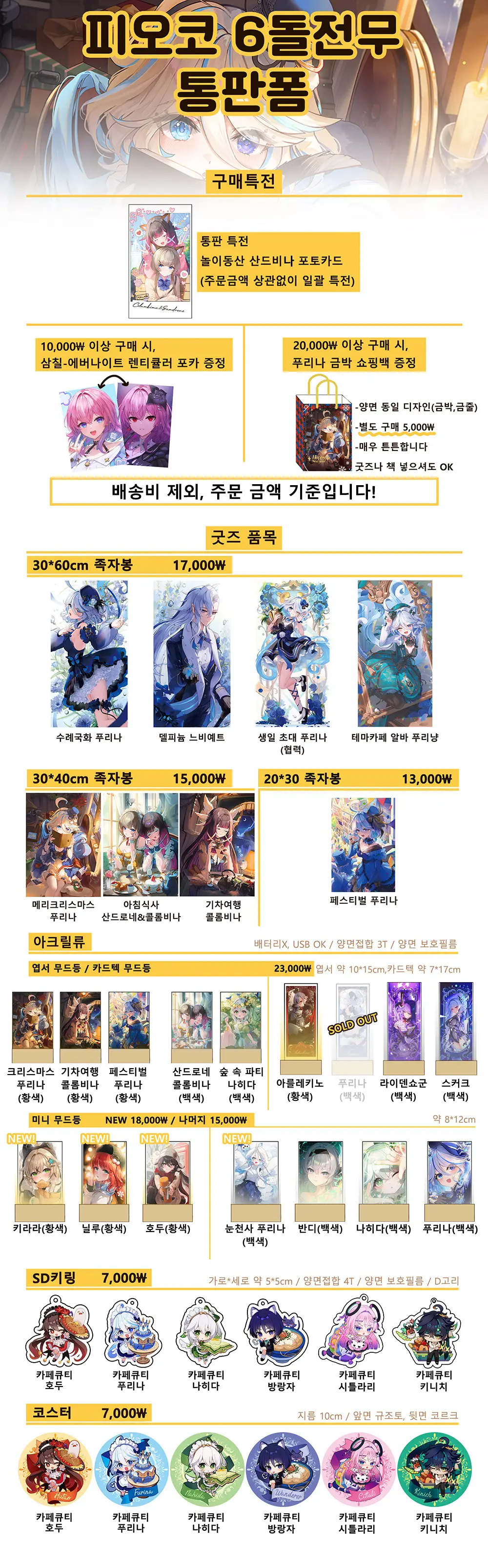 택배 : 티셔츠, 족자봉, 포스터, 코스터 2개부터, 아크릴 굿즈, 쇼핑백