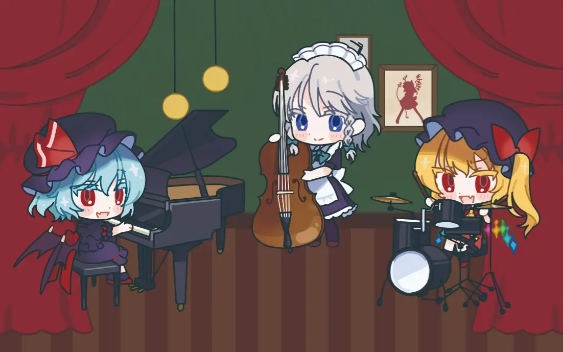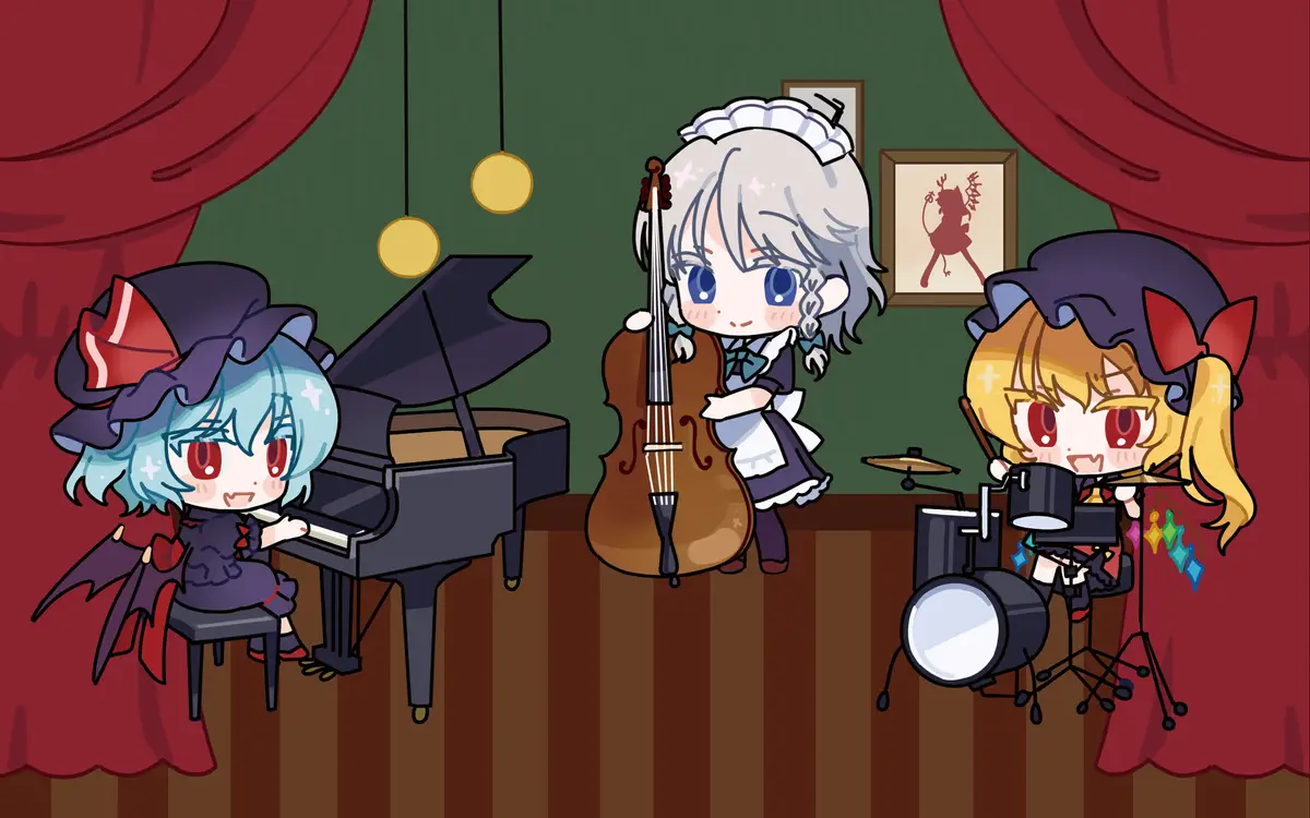 가로 13cm x 세로 9cm의 아기자기한 홍마향 트리오의 연주의 순간을 담아낸 디오라마입니다!