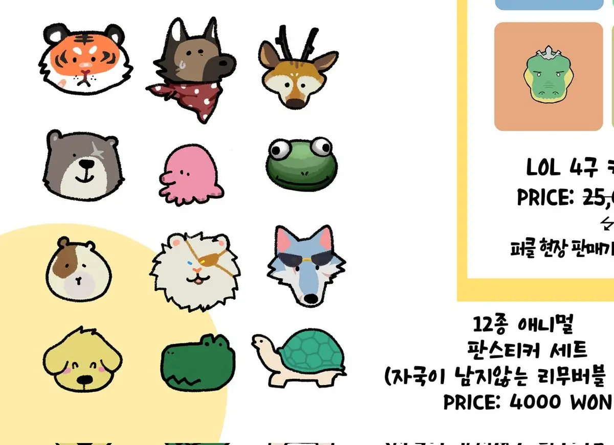 29. B-03) 12종 애니멀 판스티커 (5,000원/1개)