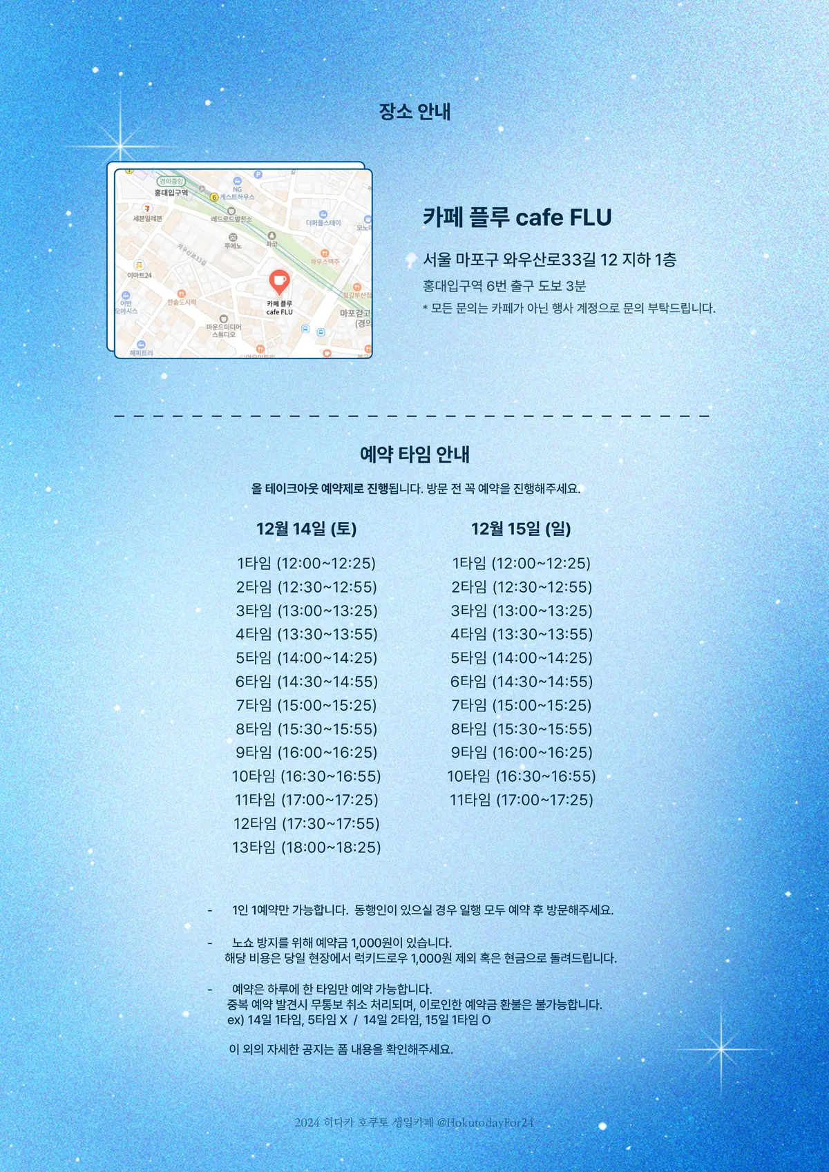 올예약제로 1인 1예약 부탁드립니다.