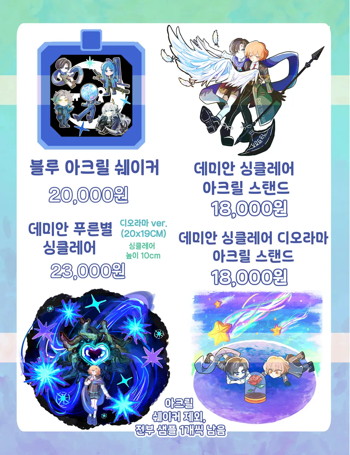 저번 행사때 데미안&싱클레어 관련 굿즈를 찾으시는 분이 계셔서 제가 가지고 있던 남은 샘플 1개를 추가했습니다.