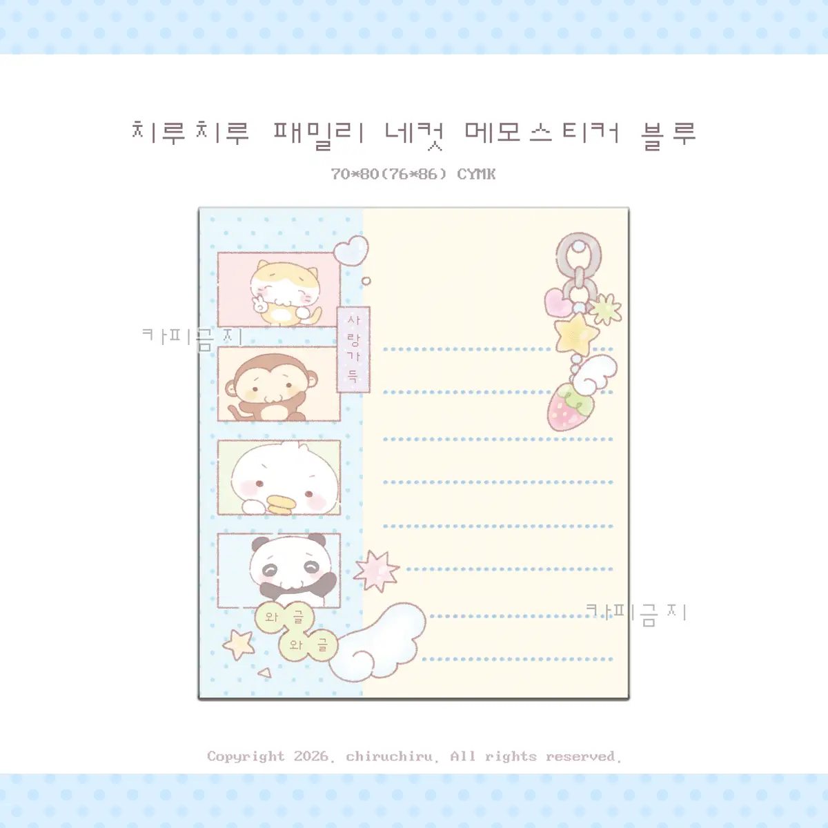2. 치루치루) 패밀리네컷 메모스티커 - 블루 10장 (1,500원/1개)