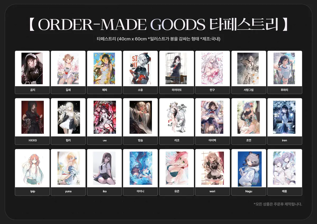 (이미지가 작게 보일 경우 하단 주문 물품의 각 작가님 품목을 클릭하면 확대가 가능합니다)