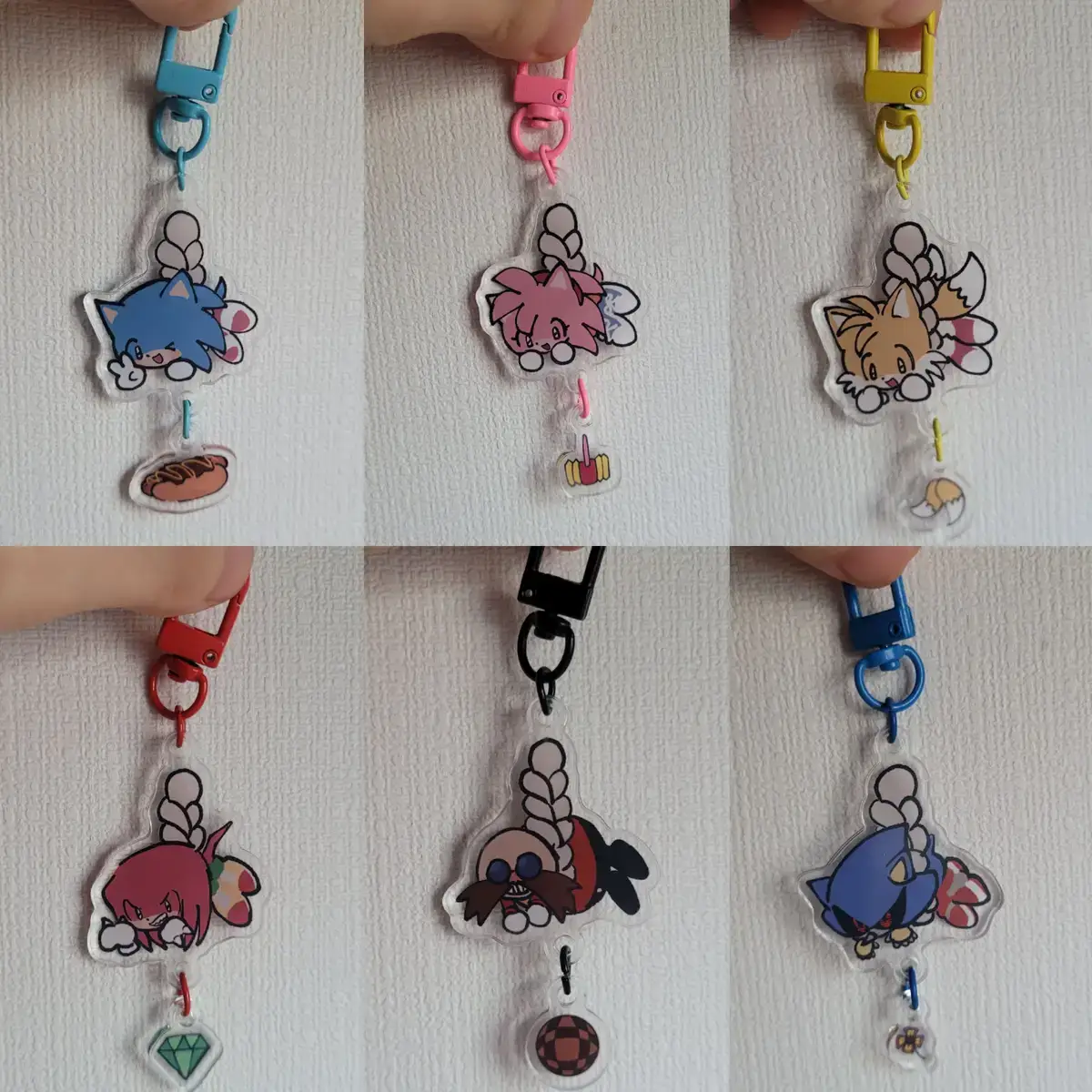 🩷D링에 연결된 아크릴은 약 가로36mm 세로48mm 사이즈입니다. 오링에 연결된 아크릴은 소닉 제외 사이즈를 조정해서 더 키워서 제작 할 예정입니다.