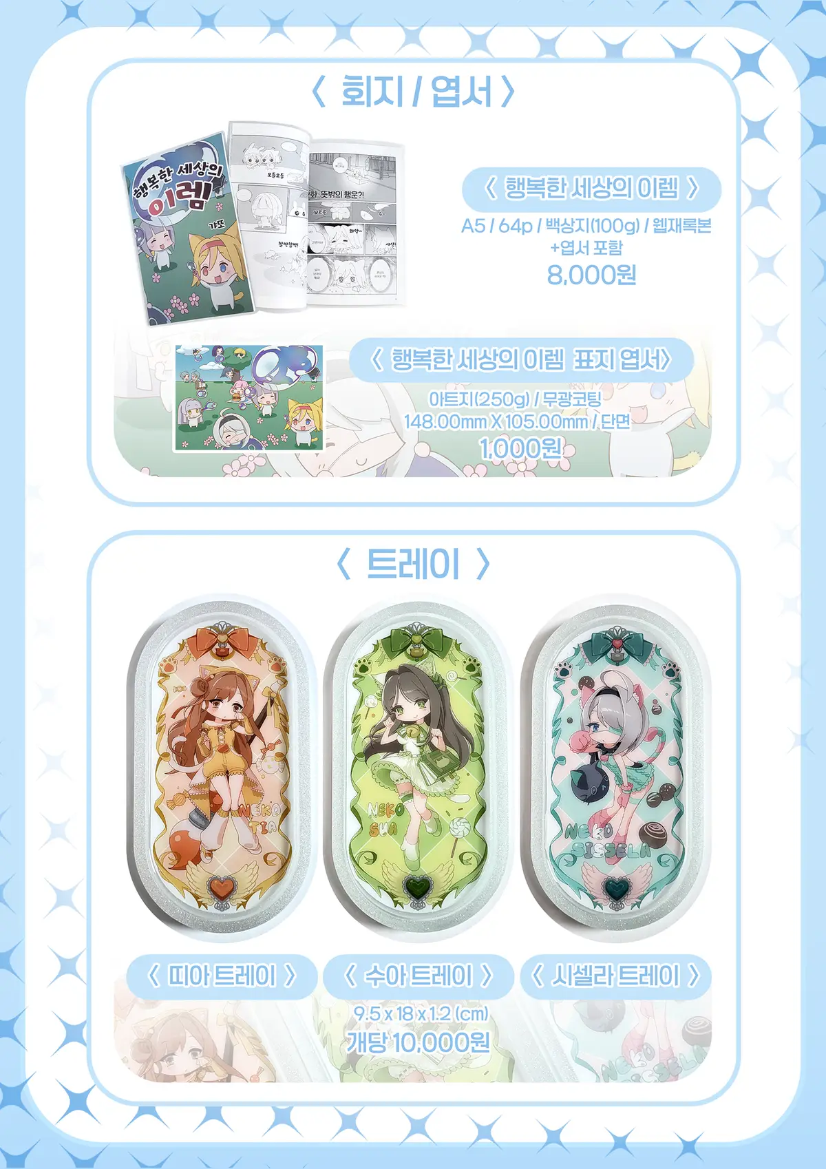 - ‘행복한 세상의 이렘’ 회지는 웹재록본입니다. 인터넷에 업로드 되었던 만화들에 추가로 미공개 2화가 수록되어 있습니다.