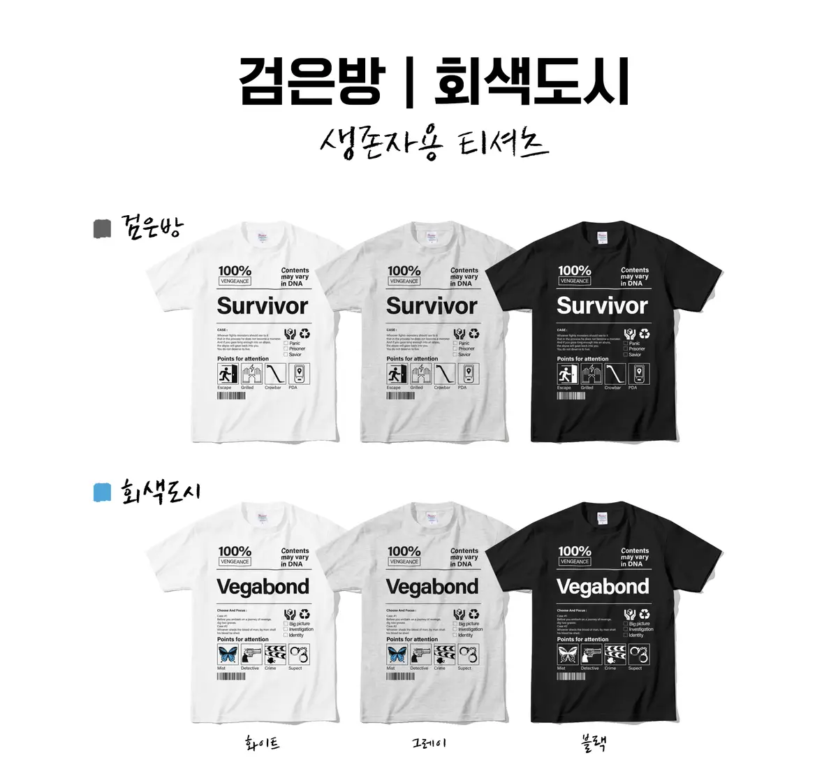 모바일 게임 검은방, 회색도시 비공식 티셔츠입니다.
