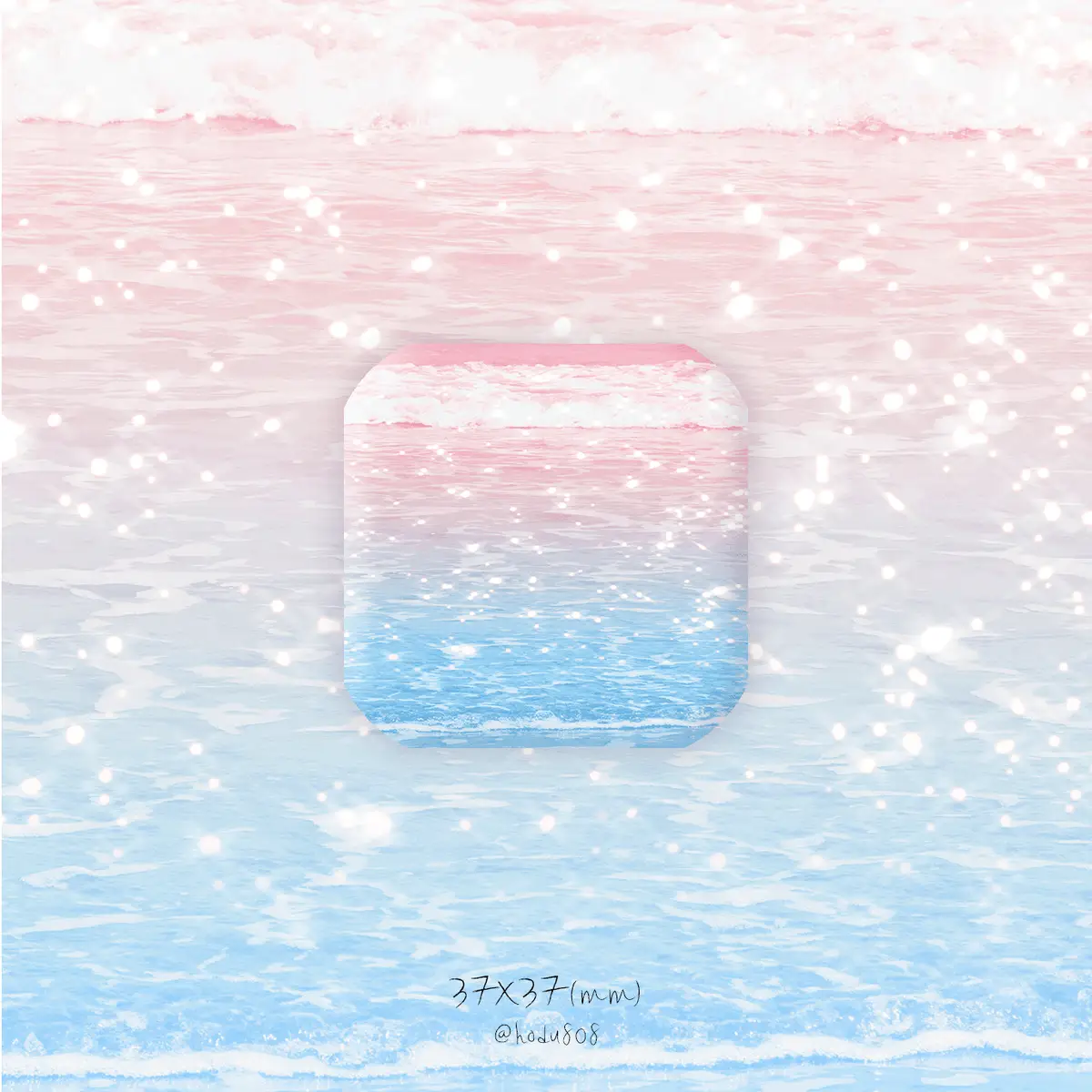 142. 핑크 윤슬 사각 핀버튼 (37*37/유광)