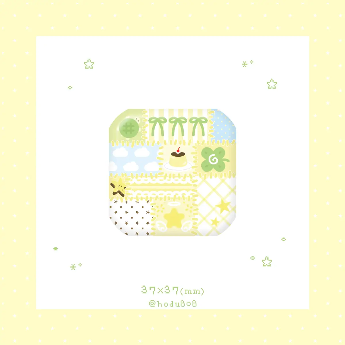 150. 노랑 패치워크 사각 핀버튼 (정상본) (37*37/무광)