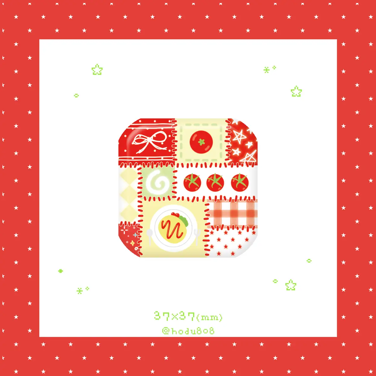 147. 빨강 패치워크 사각 핀버튼 (약파본) (37*37/무광)