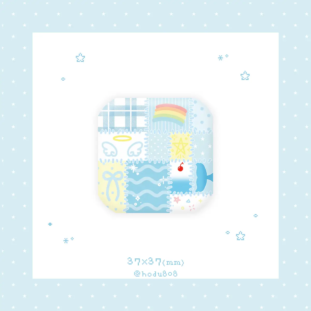 149. 파랑 패치워크 사각 핀버튼 (정상본) (37*37/무광)