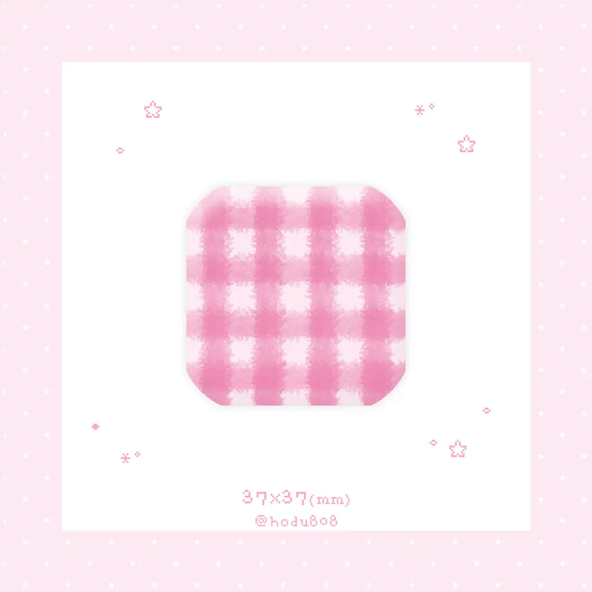 138. 핑크 체크 사각 핀버튼 (37*37/무광)
