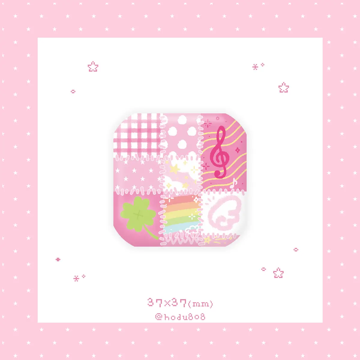 148. 분홍 패치워크 사각 핀버튼 (정상본) (37*37/무광)