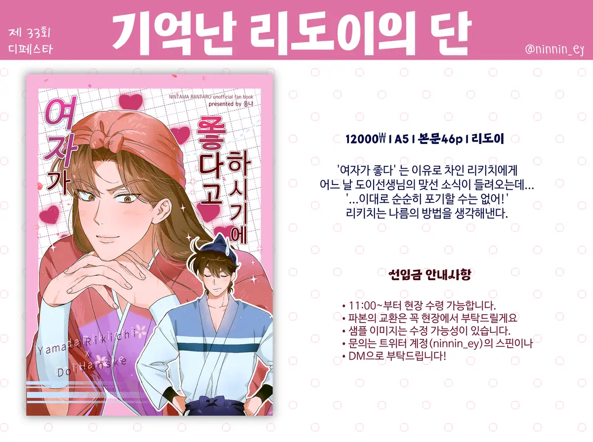 본 선입금 폼은 4 D.FESTA 닌타마 쁘띠존에 발간될 예정으로, 응냐(@ninnin_ey)의 선입금 폼입니다.