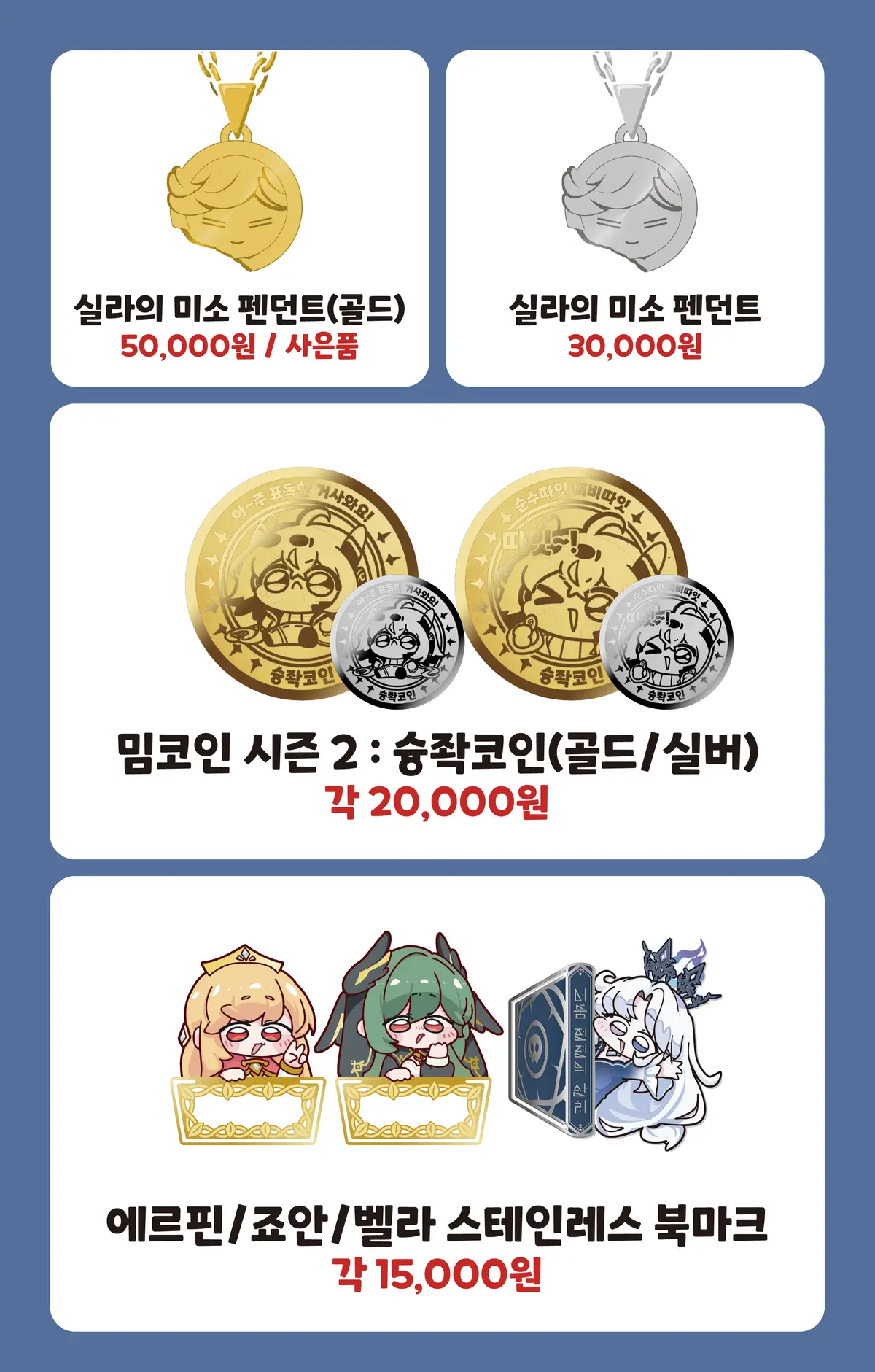 책갈피를 제외한 금속류 굿즈들은 재입고가 되지 않는 한정판매 굿즈입니다.