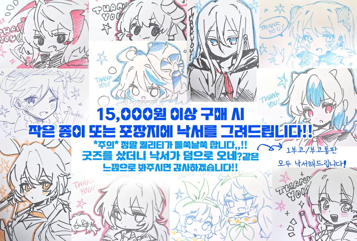 ✏️손그림은 선입금 & 통판 전용 이벤트로 하단질문에 원하시는 캐릭터(한명만!)를 적어주시면 됩니다!