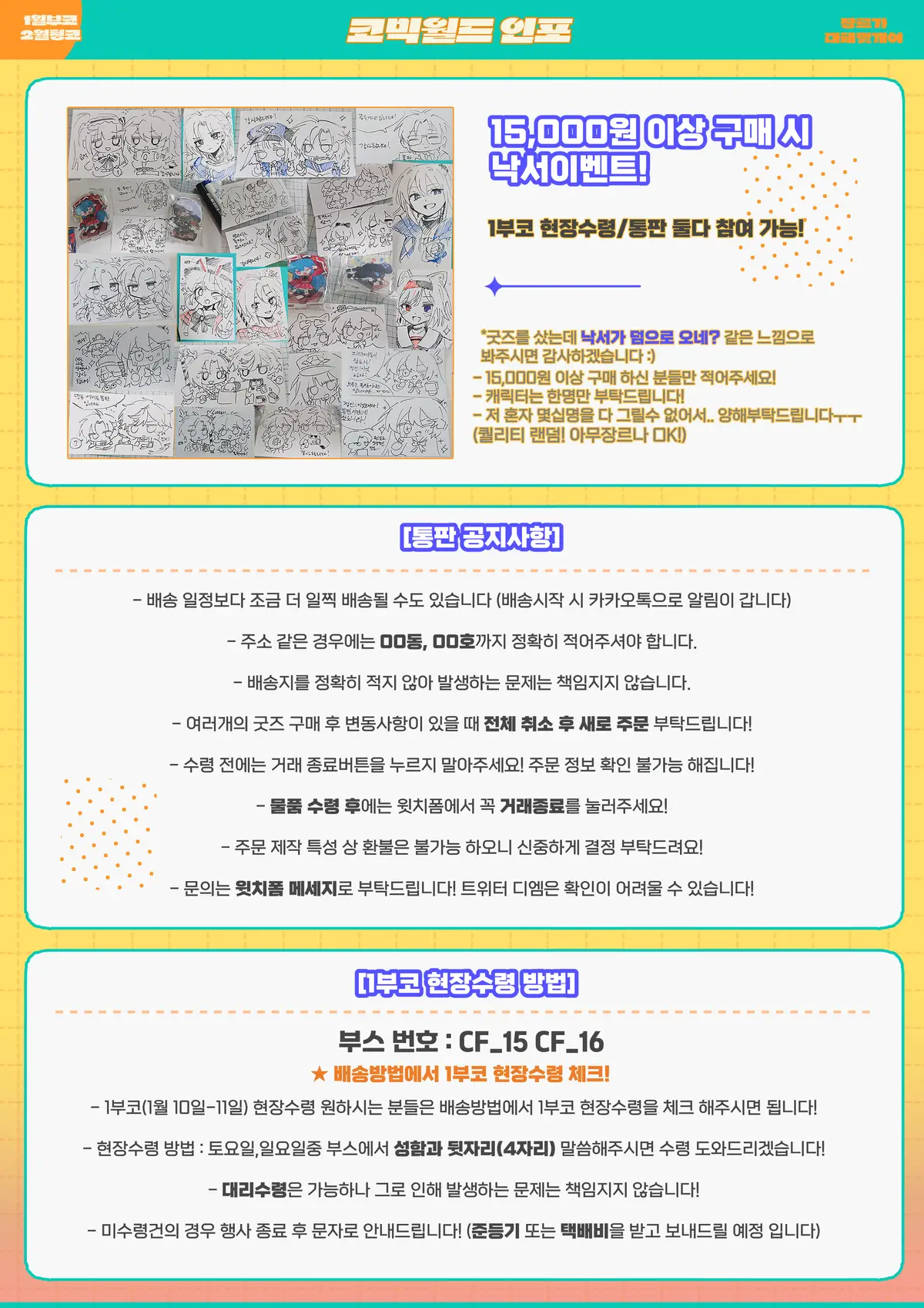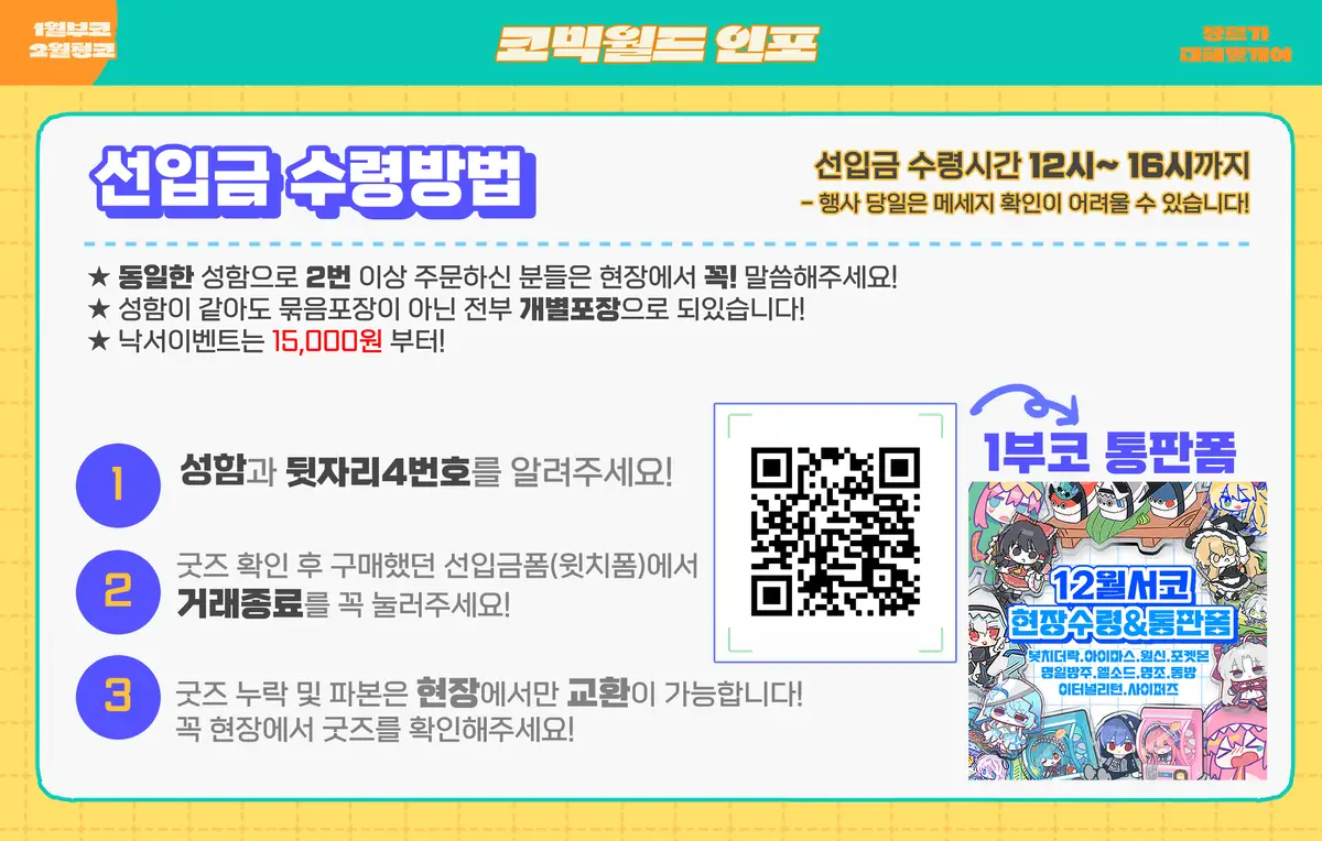 ❗ 일부 굿즈는 선입금&통판으로만 판매하고 현장에 가져가지 않을수도 있습니다!