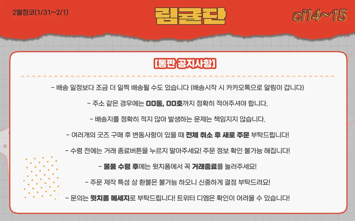 - 개별구매 하시는 분들은 입력안하셔도 됩니다 :)