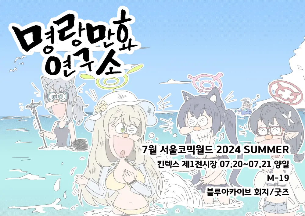 이번 7월 20/21일 킨텍스에서 열리는 서울코믹월드 SUMMER에 참가하는, 블루아카이브 2차창작부스 "명랑만화 연구소"의 현장수령 선입금폼을 열었습니다.선입금 예약으로 편안한 구매 바랍니다.