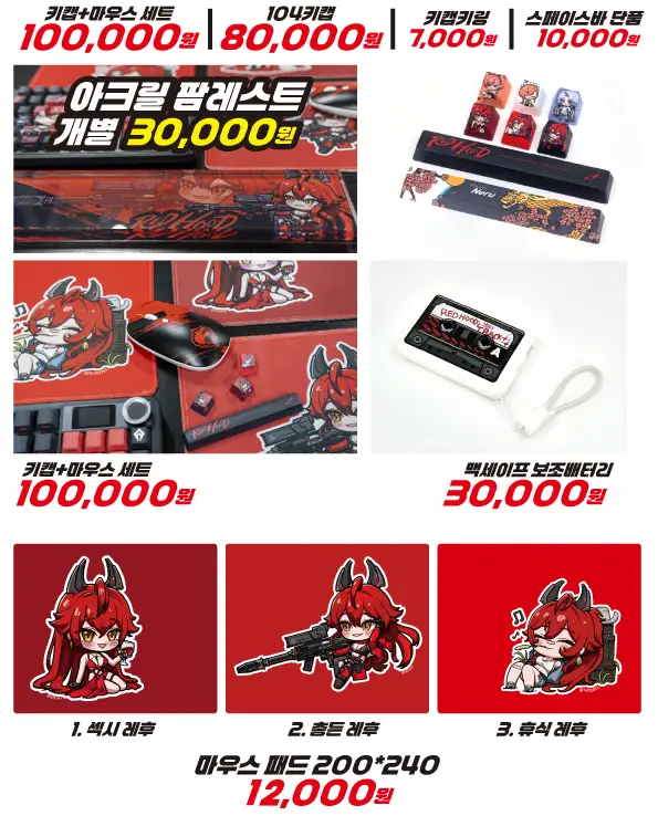 3. 니케 레드후드 104키캡 + 마우스 (100,000원/1개)