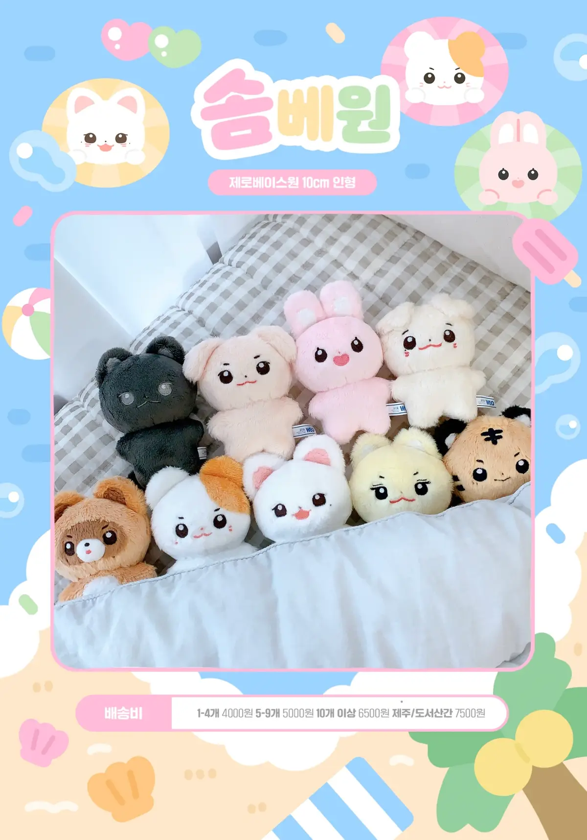 인형 제작은 기본적으로 샘플제작 2-3개월에 생산 3개월+a가 걸립니다:) 생산기간은 업체사정에 따라 유동적이니 참고 부탁드립니다!