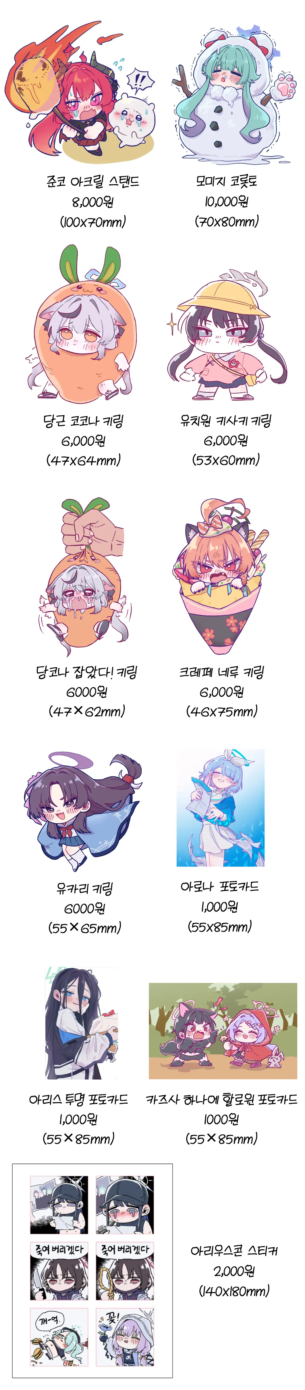 ㅡ 판매굿즈 : 회지, 키링, 코롯토, 스탠드 등
