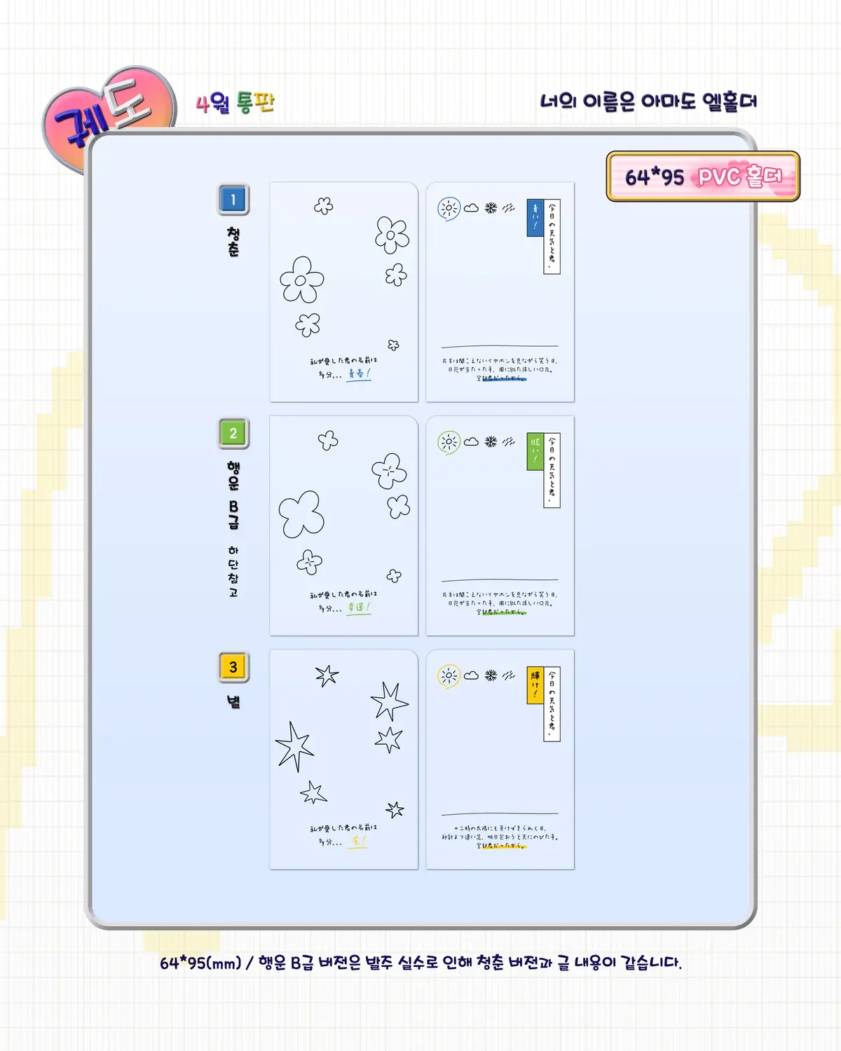 행운(초록) 버전은 B급 재고만 남아있습니다.