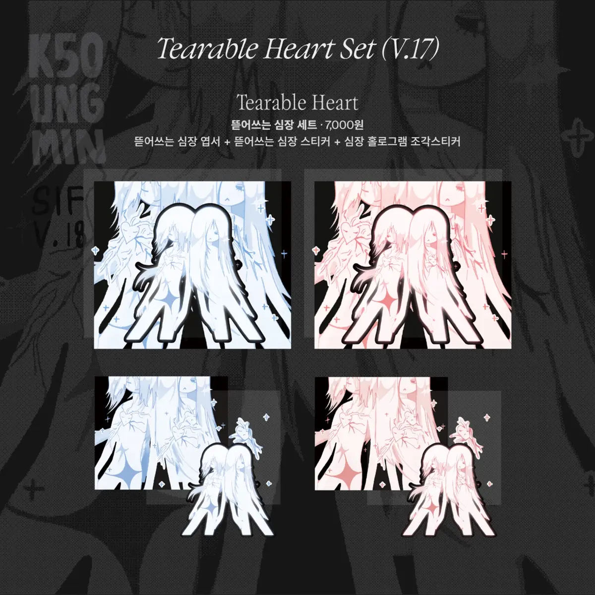 엽서(심장 핑크) + 겨울맞이 세트 + 흘겨보는 심장 키링 + 뜯어쓰는 심장(핑크) + 심근 칼선스티커 + 자라나는 심장 달력