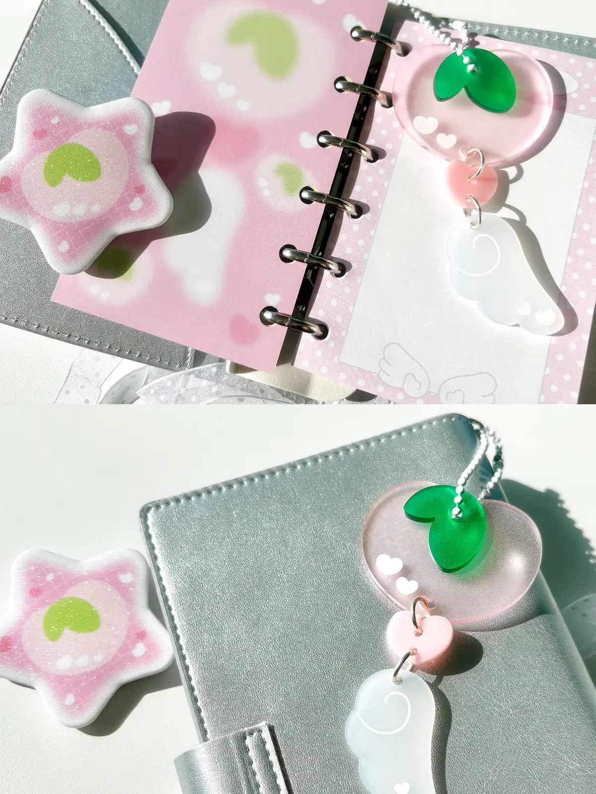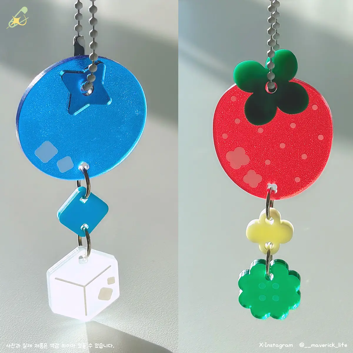 반투명한 아크릴에 빛이 투과되면 새로운 느낌을 냅니다. 가방에 다는 것뿐만 아니라 벽에도 걸어서 분위기를 바꿔보세요!