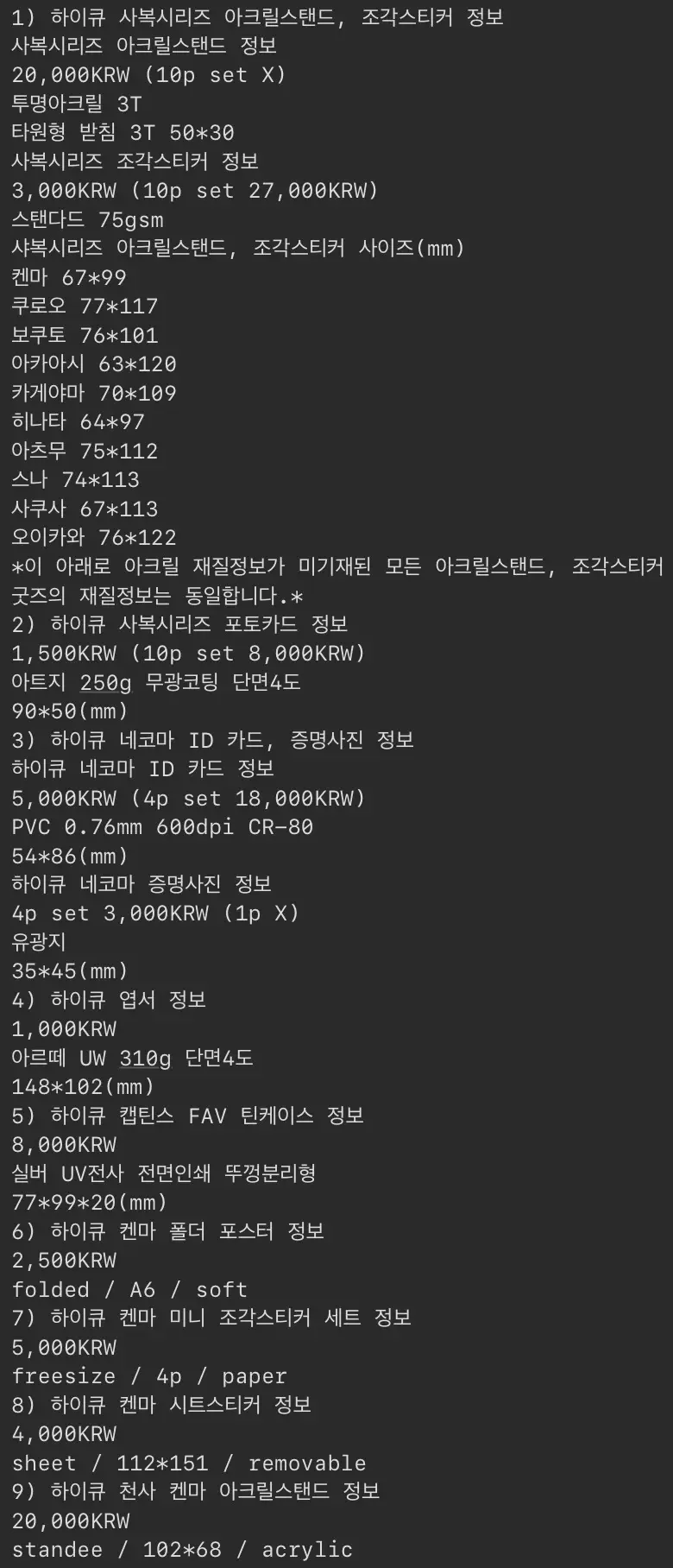 하이큐 비공굿 재고통판 신청 폼입니다.