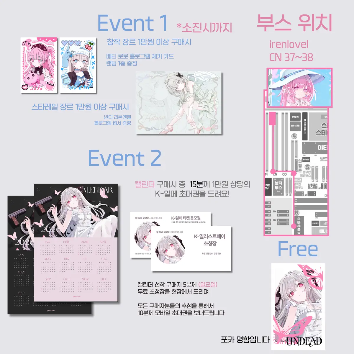 캘린더 구매 없이도 선착순으로 부스 방문해주시면 행사기간 요일 상관없이 사용할수있는 k일러스트페어 초청장을 소진시까지 무료로 드릴게요!ㅠ....