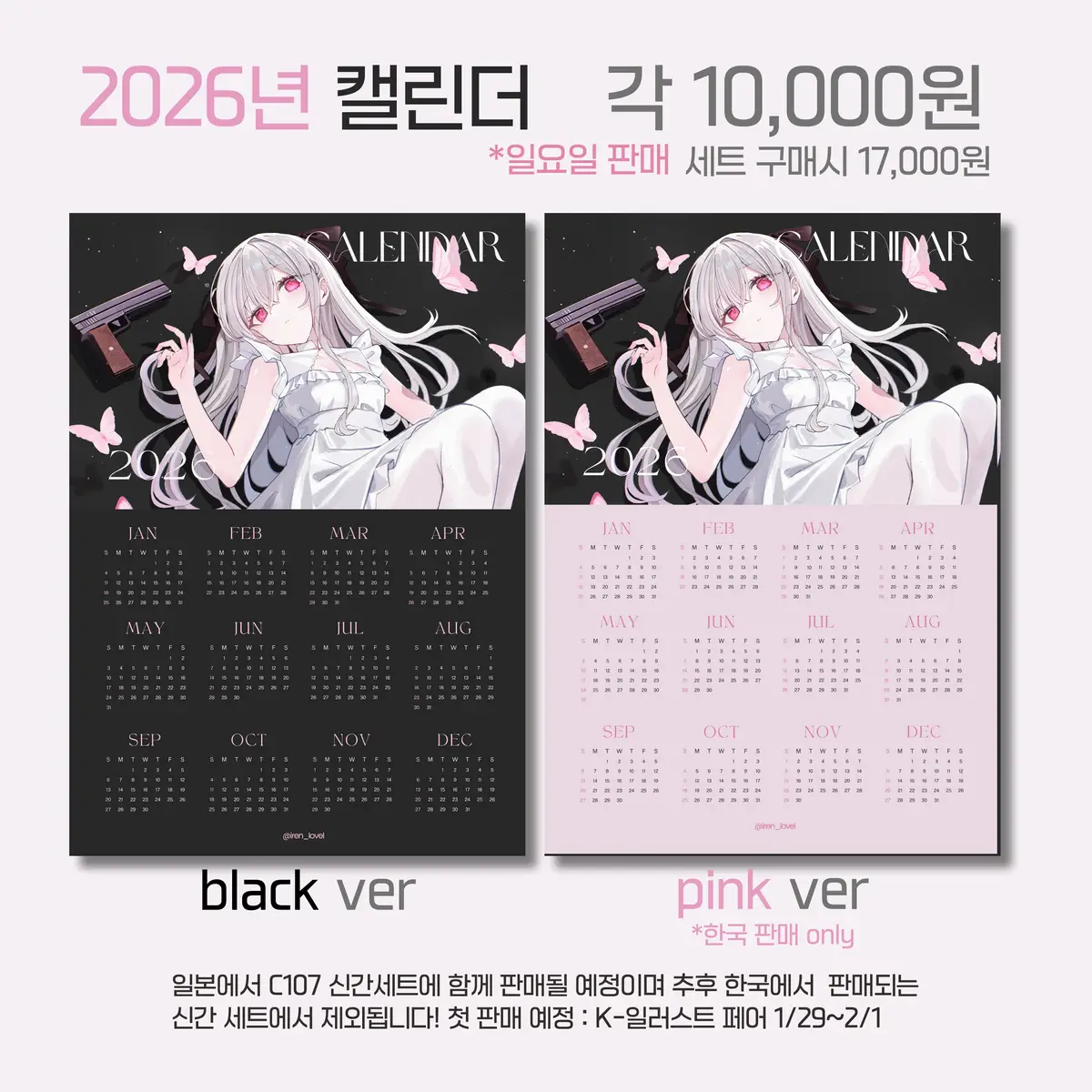 추후 캘린더는 1월 10일 11일 부산코믹월드와
