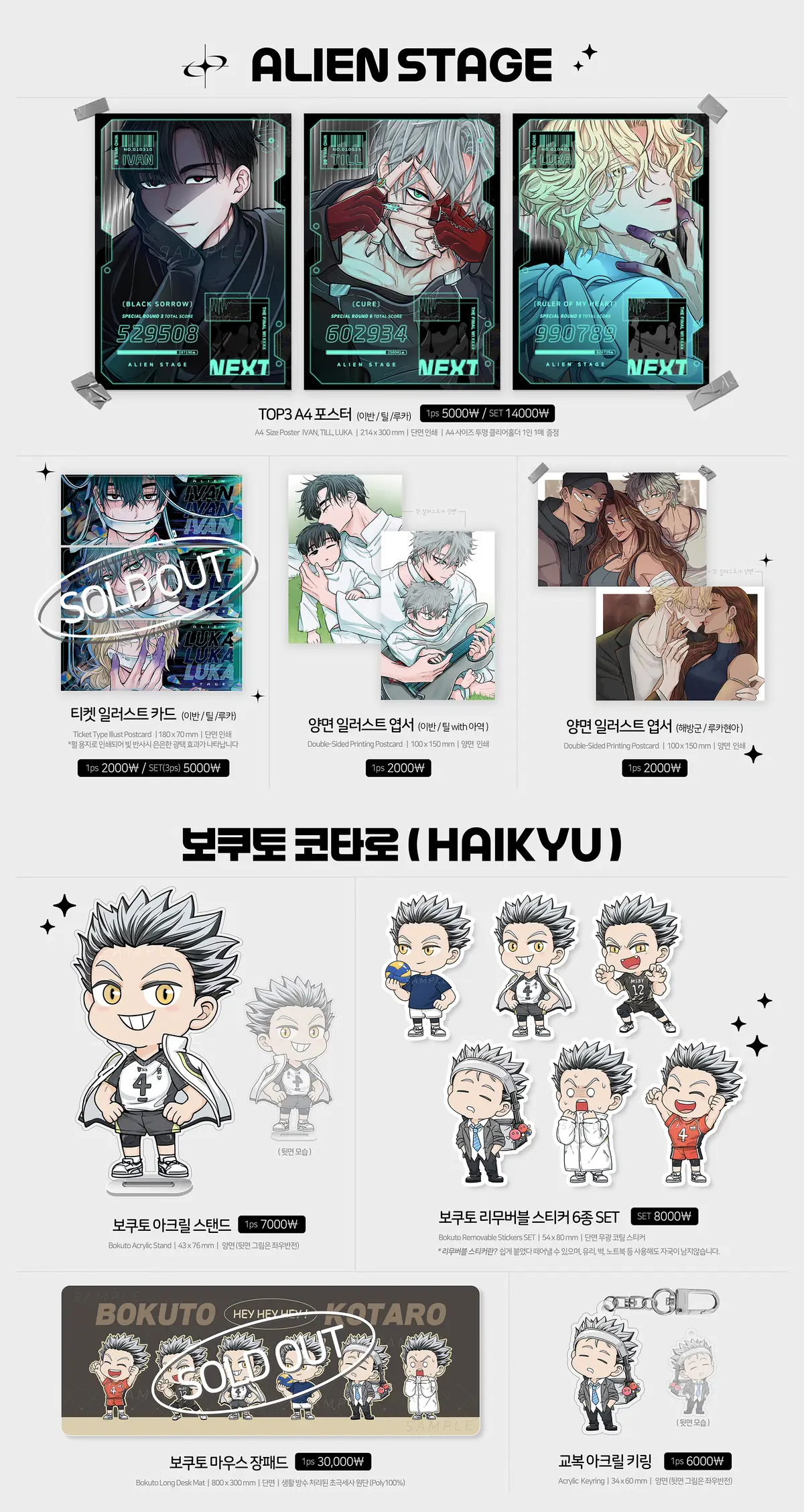 하이큐 / 원피스 / 주술회전 / 사카모토데이즈 / ALST 등