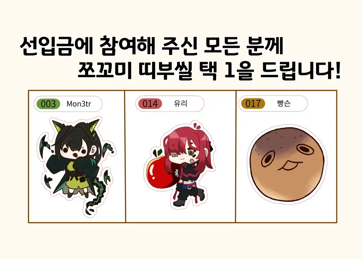 (표에는 없지만 유리 키링이 있습니다!)