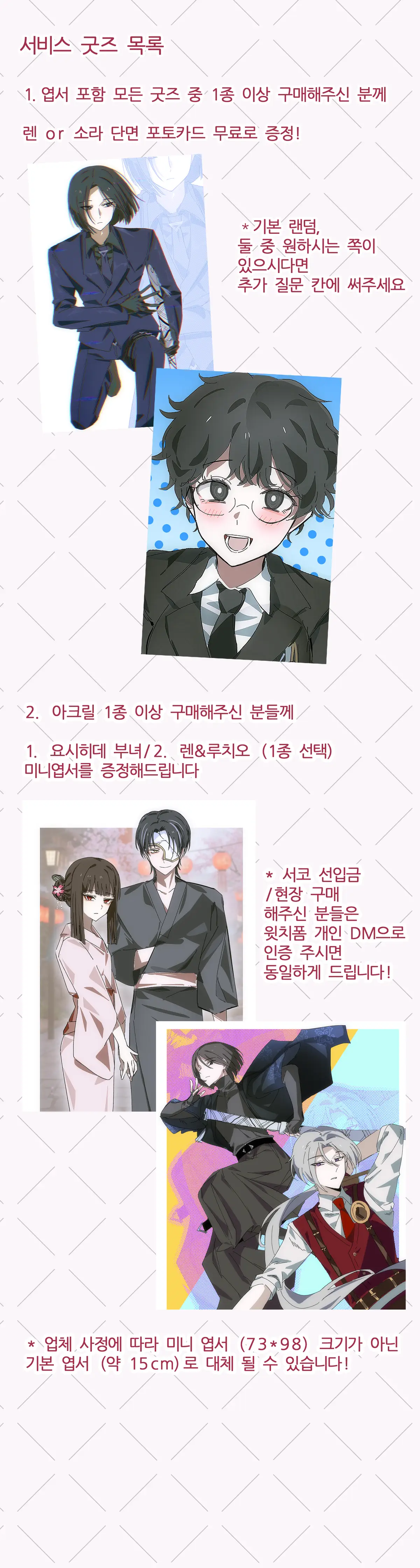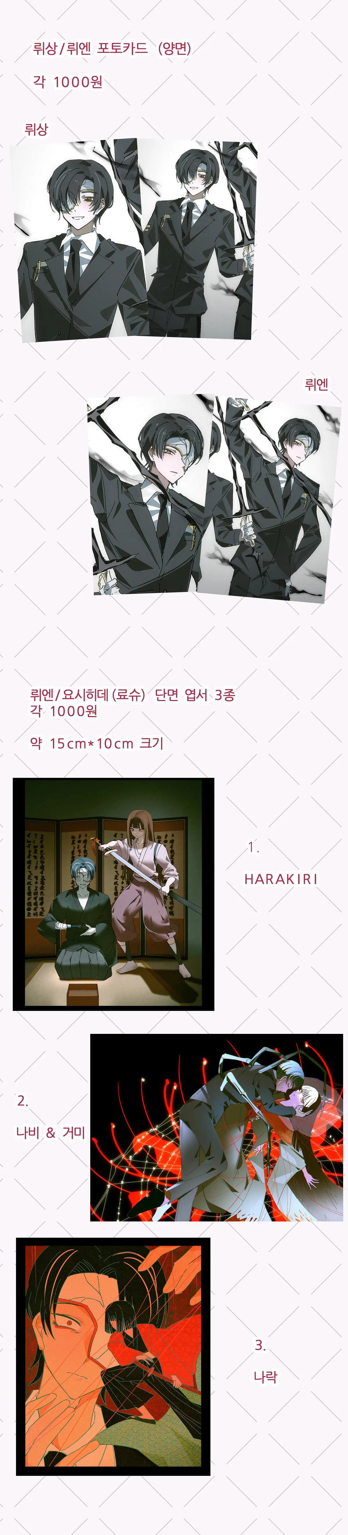 3월 서울(일산) 코믹월드 zmgma 부스 + 뤼엔/요시히데(료슈) 굿즈 통신 판매 폼입니다!