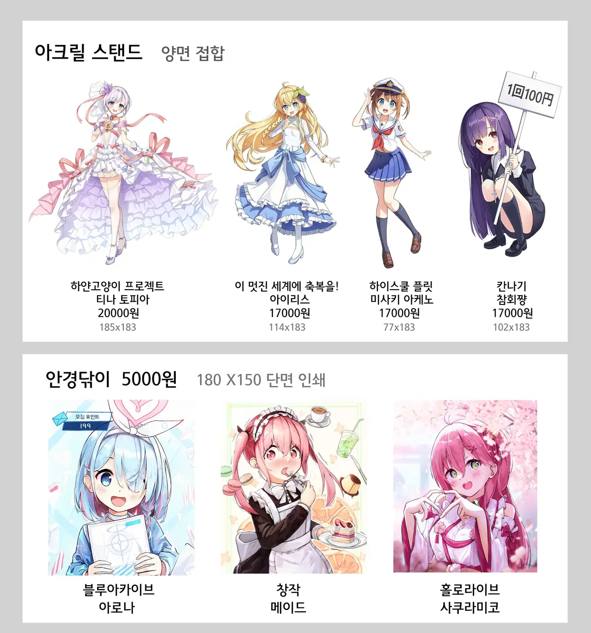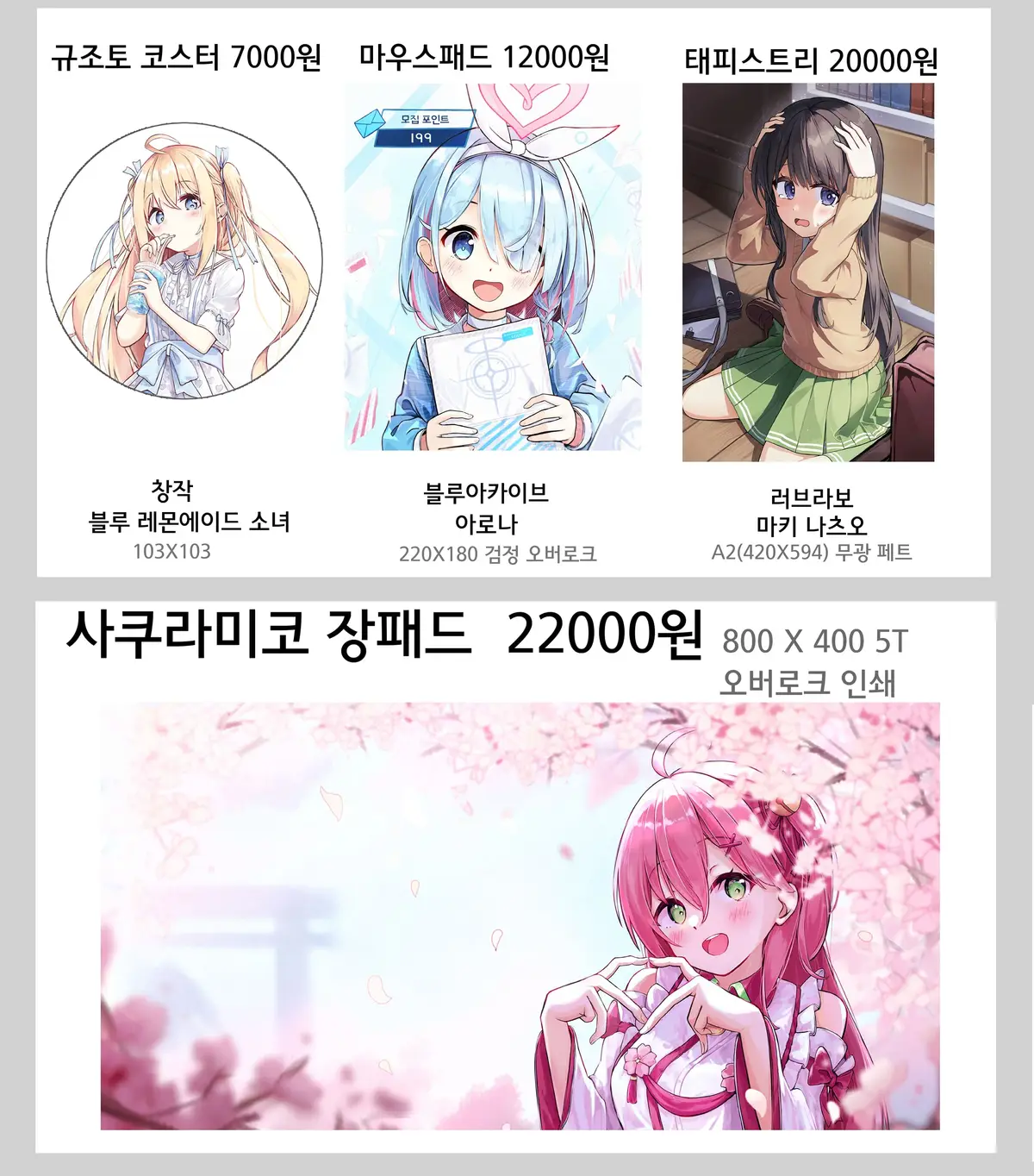 치카 아크릴 스탠드와 미코 장패드를 제외한 상품들은 3월 21일(토) 개최하는